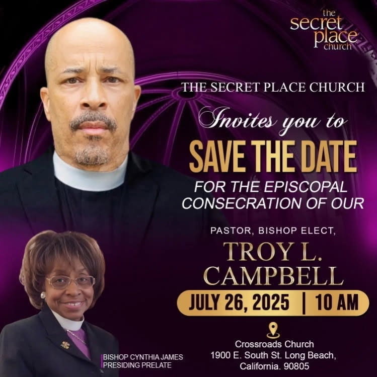 The day that the Pastor of The Secret Place Church, Bishop Troy L. Campbell’s episcopal consecration took place – Long Beach, Saturday, July 26, 2025