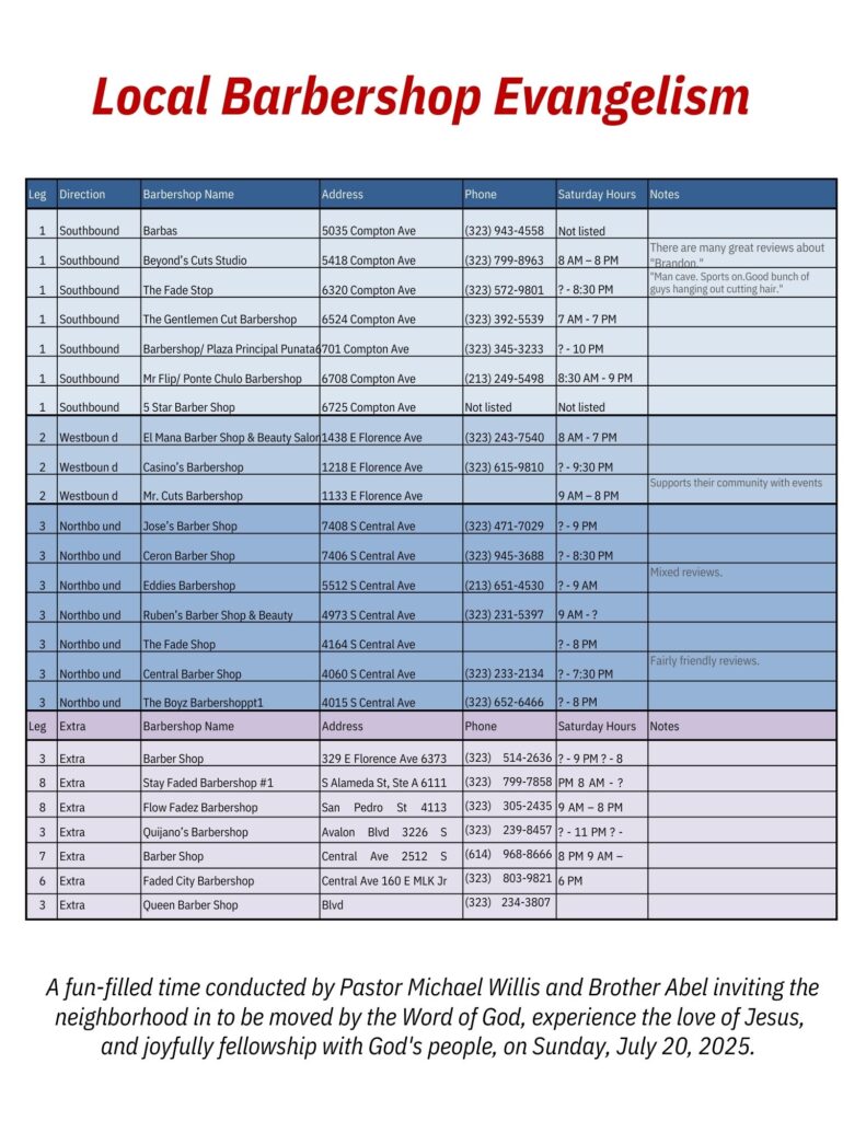 Hallelujah! What a wonderful time of local neighborhood evangelism while partnering with Pastor Michael Willis to meet the local community, invite them in, and then, two days later, share the joy, love, salvation, and life of our Lord Jesus Christ – Watts, Friday, July 18 and Sunday, July 20, 2025