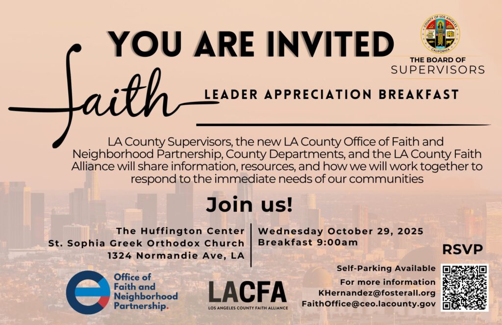 The S.A.L.T. was blessed to stand among an incredible gathering of pastors, imams, rabbis, and community leaders at the LA County Faith Leader Appreciation Breakfast, hosted by the LA County Board of Supervisors, the Office of Faith and Neighborhood Partnership, and the LA County Faith Alliance.